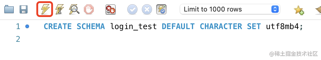 CREATE SCHEMA login_test DEFAULT CHARACTER SET utf8mb4;create schema 或者 create database 都可以,一个意思。