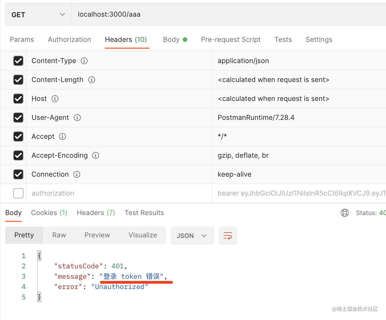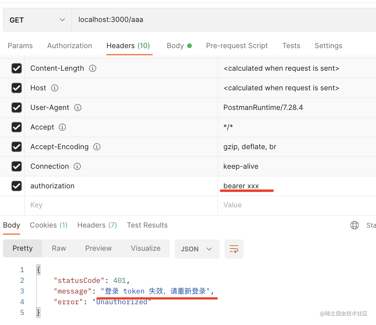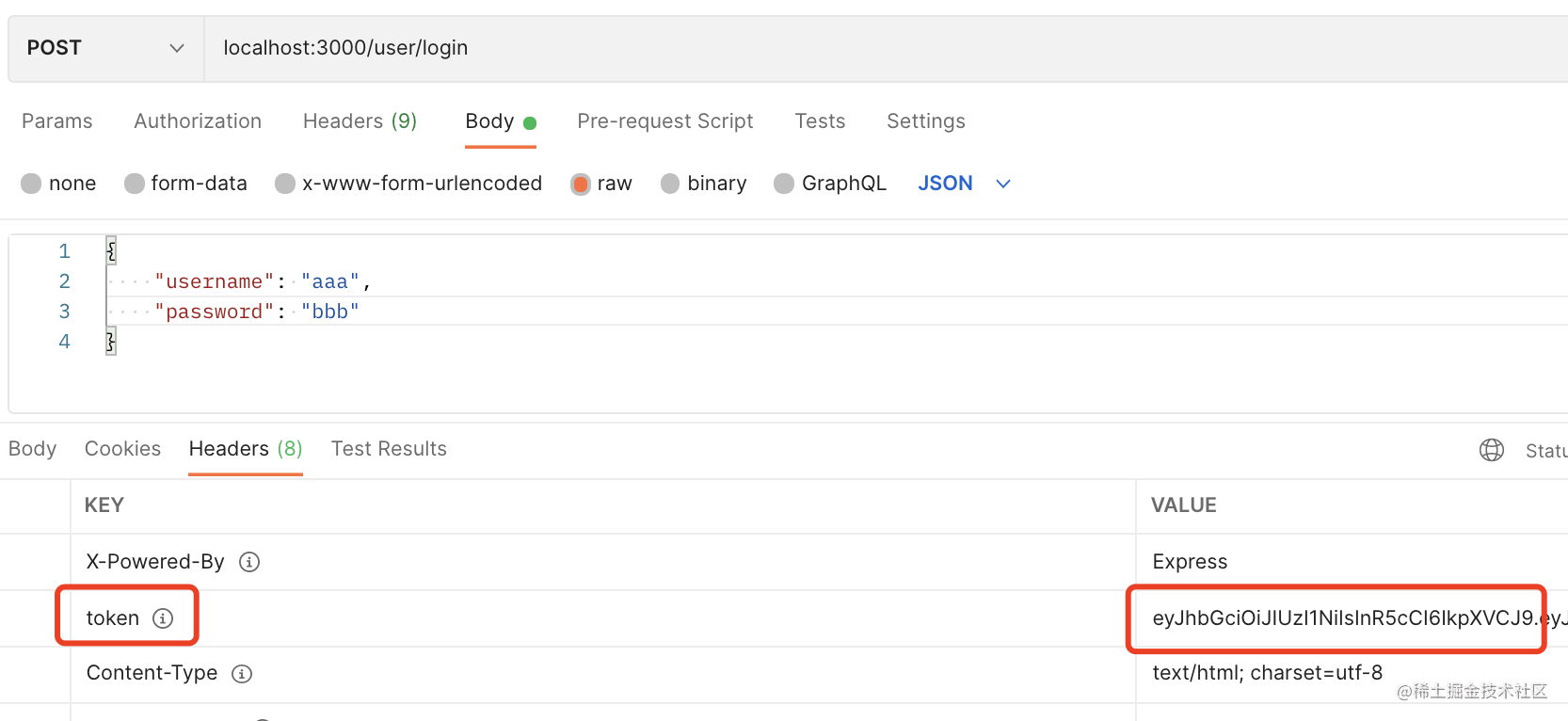 然后请求 /aaa 的时候通过 authorization 的 header 带上 token: