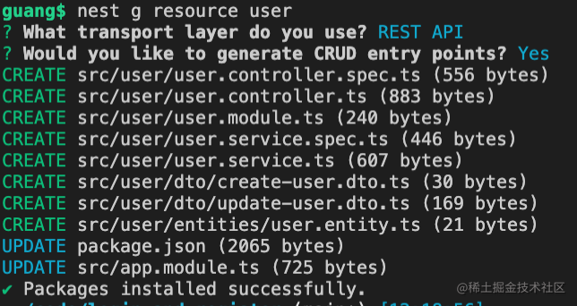 export class AppModule {}之后创建个 user 的 CRUD 模块: