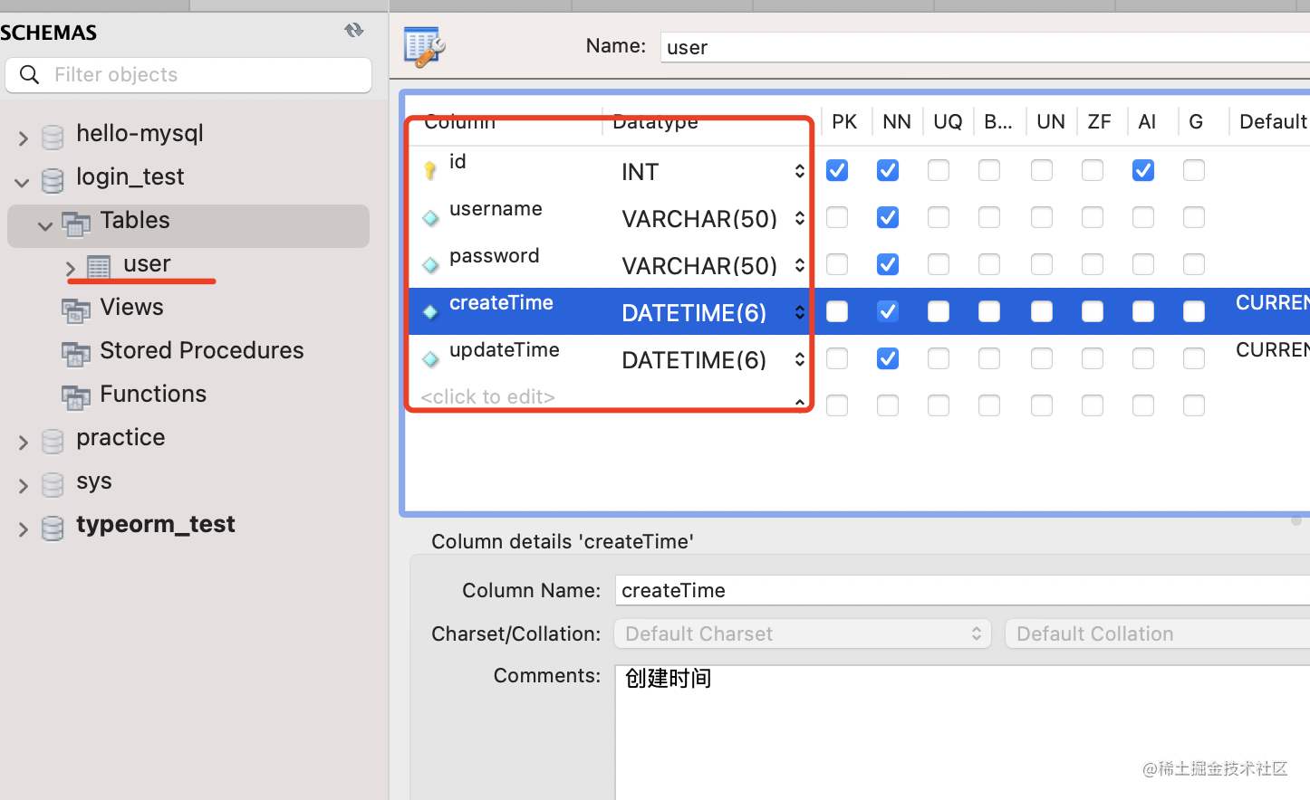 这里的 @CreateDateColumn 和 @UpdateDateColumn 都是 datetime 类型。