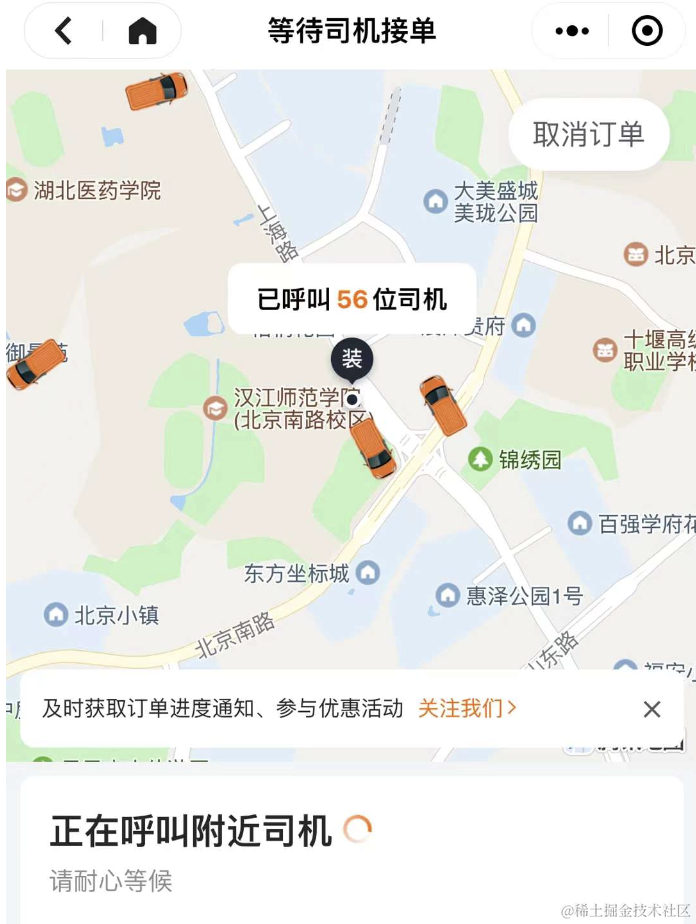 想必大家都打过车,打车软件可以根据你的当前位置搜索附近的车辆: