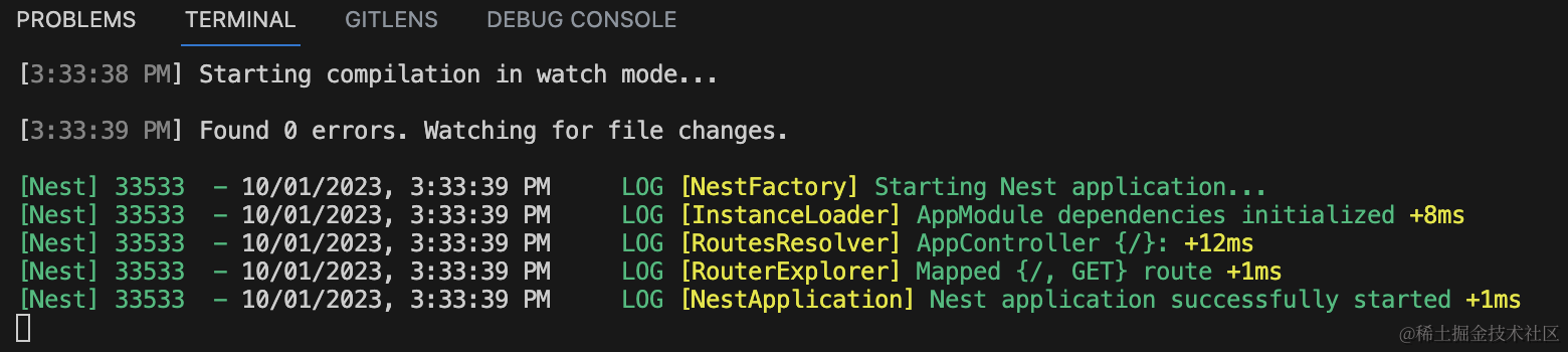 浏览器访问 http://localhost:3000 可以看到 hello world,就代表 nest 服务跑起来了: