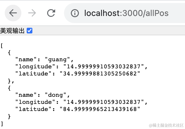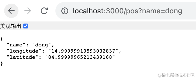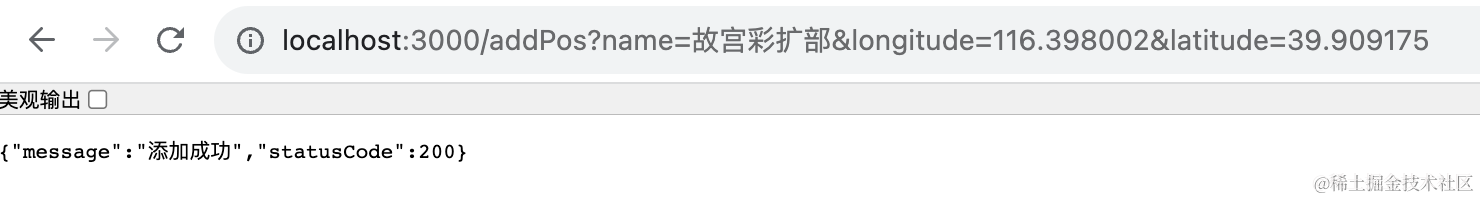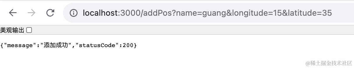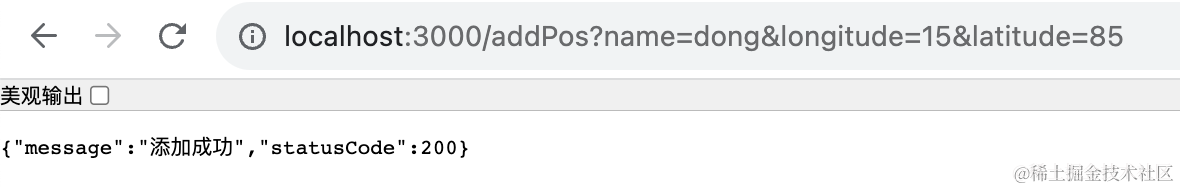 添加 addPos 的 get 请求的路由,传入 name、longitude、latitude,调用 redisService添加位置信息。