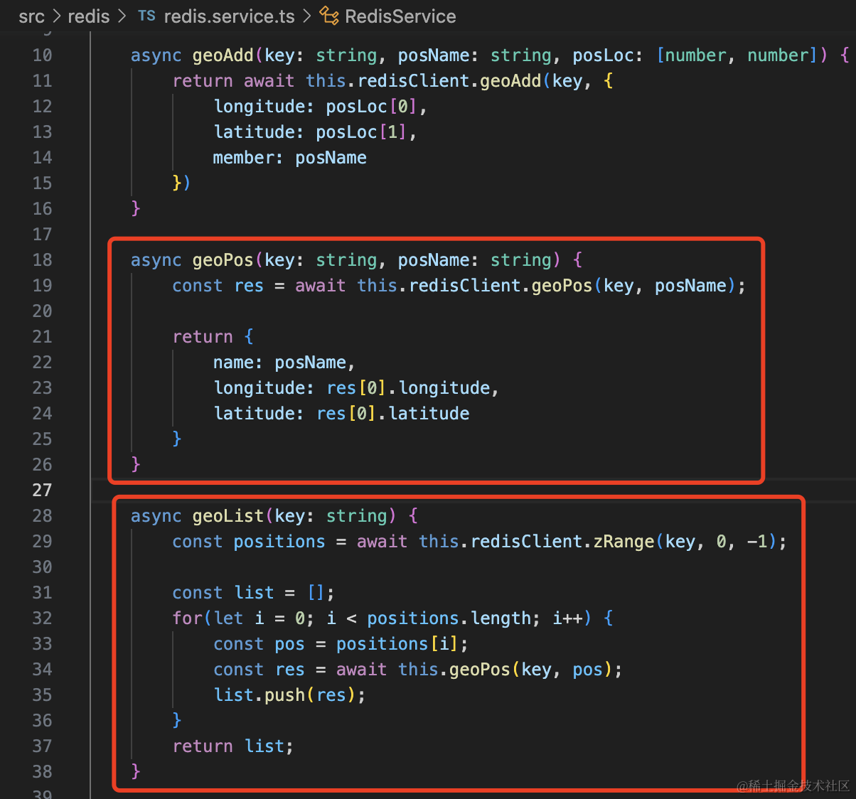 export class RedisModule {}然后在 RedisService 里注入 REDIS_CLIENT,并封装一些操作 redis 的方法: