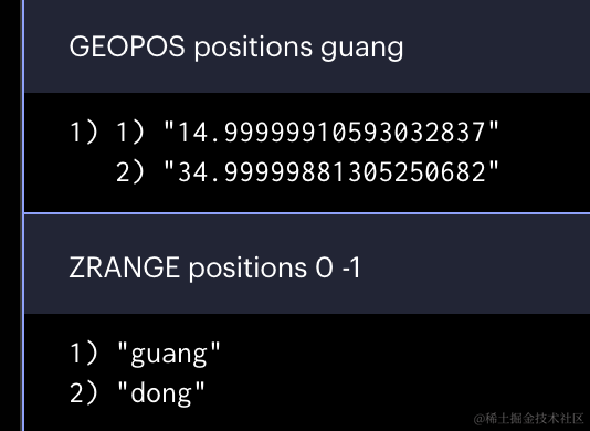 我们用 geoadd 命令添加了两个位置。