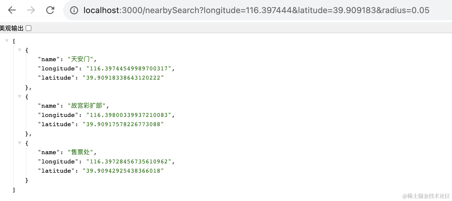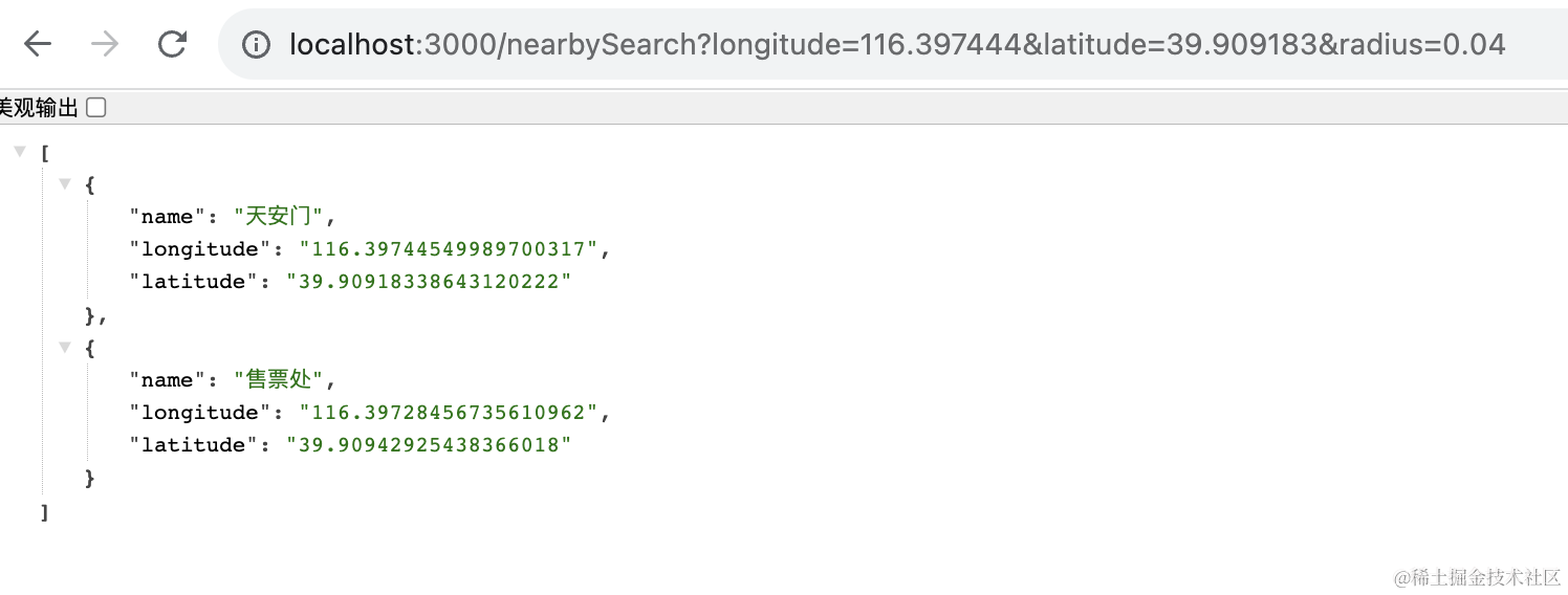 我们在 Nest 里封装了 geoadd、geopos、zrange、georadius 等 redis 命令。实现了添加点,搜索附近的点的功能。