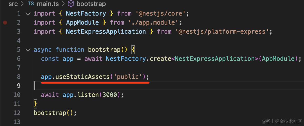 app.useStaticAssets('public');