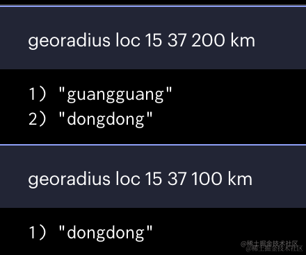 georadius loc 15 37 200 km结果如下: